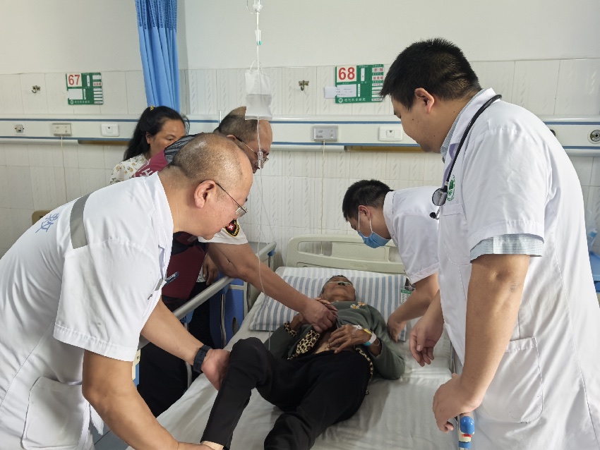 7月21日,肖袁英在石棉縣人民醫(yī)院再次見到了那位被救的村民,村民伸出手握住了她的手。