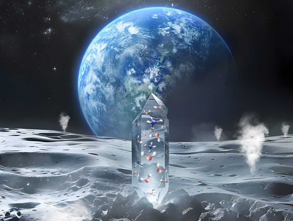 月球表面含水礦物形成效果圖。(中國(guó)科學(xué)院物理研究所供圖)