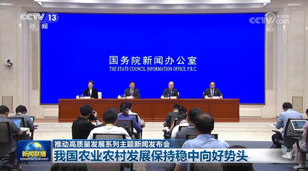 國務(wù)院新聞辦公室7月24日舉行推動高質(zhì)量發(fā)展系列主題新聞發(fā)布會,農(nóng)業(yè)農(nóng)村部負責人介紹,黨的十八大以來,我國農(nóng)業(yè)農(nóng)村發(fā)展持續(xù)保持穩(wěn)中向好、穩(wěn)中提質(zhì)勢頭。