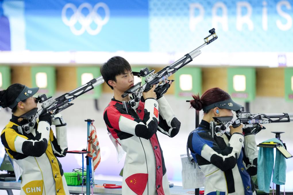 巴黎奧運會首金大概率將在射擊項目的10米氣步槍混合團體上產生。代表中國隊出戰(zhàn)的是黃雨婷/盛李豪和韓佳予/杜林澍兩對組合。四人中僅盛李豪有過奧運經(jīng)驗,他在東京奧運會上一鳴驚人奪得男子10米氣步槍銀牌。三年過去,盛李豪更加成熟,他的混團搭檔黃雨婷年齡雖小,在賽場上卻異常沉穩(wěn),兩人已攜手奪得世錦賽、亞運會等多項大賽冠軍。