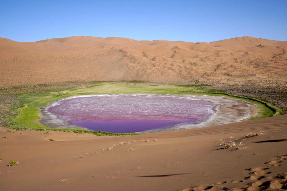 巴丹吉林沙漠地處阿拉善高原,屬中國(guó)西北極干旱的溫帶荒漠地區(qū),是中國(guó)第三大沙漠和第二大流動(dòng)沙漠。該地區(qū)以連綿起伏的高大沙山和丘間眾多湖泊而聞名,展示了沙漠景觀不斷變換的地質(zhì)和地貌特征,令人嘆為觀止,全球少有沙漠可以比肩。巴丹吉林沙漠的重要標(biāo)志包括世界最高的固定沙山(相對(duì)高度達(dá) 460 米)、最密集的沙漠湖泊、最廣闊的鳴沙區(qū)域,以及多樣的風(fēng)蝕地貌。如此獨(dú)特的景觀展現(xiàn)了巴丹吉林沙漠非凡的自然美學(xué)價(jià)值,展示著地球上重要、典型且持續(xù)的風(fēng)沙地貌發(fā)展過程,同時(shí)也是豐富多彩的生物棲息地。