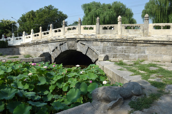 從正陽(yáng)橋出發(fā)、一路向北,700多歲的萬(wàn)寧橋保持著從元代至今的交通功能,證明了元、明、清三代中軸線的重疊關(guān)系。岸邊垂柳、池中荷花,與這座古橋相得益彰,吸引著游人拍照打卡。