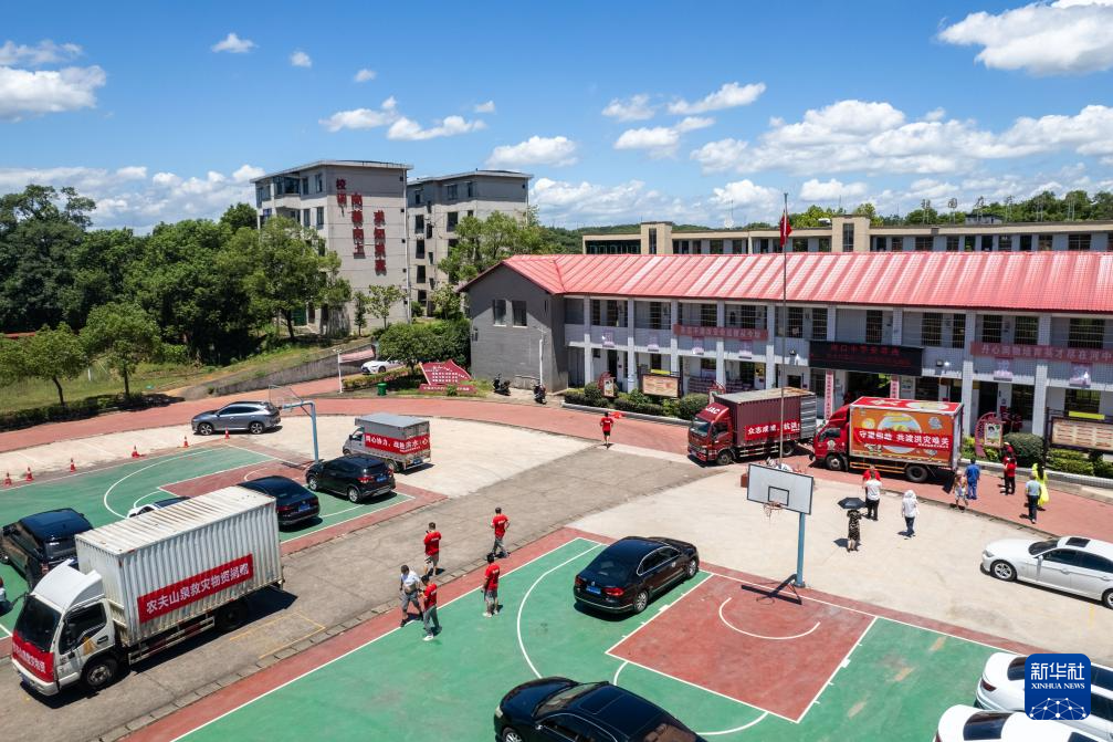 這是7月30日在湖南省湘潭縣拍攝的河口中學(xué)安置點(diǎn)(無(wú)人機(jī)照片)。新華社記者 陳思汗 攝