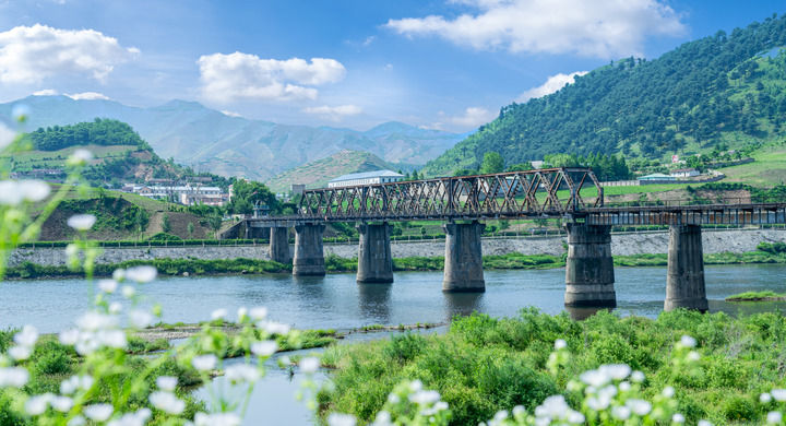 這是地處中朝邊境、位于吉林省集安市的鴨綠江國境鐵路大橋(2023年6月17日攝,無人機照片)。新華社記者 周萬鵬 攝