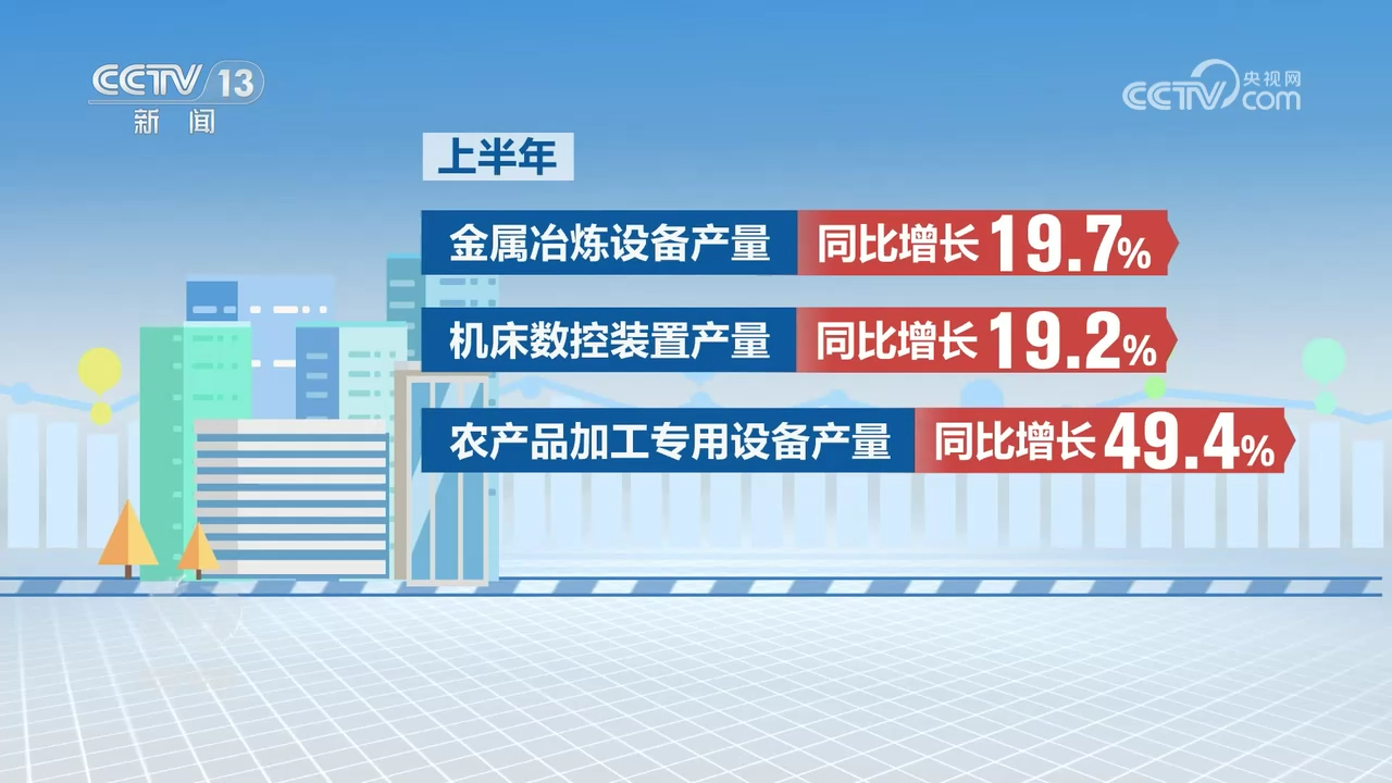 今年以來(lái),在各方共同努力下,推動(dòng)大規(guī)模設(shè)備更新和消費(fèi)品以舊換新工作取得良好開(kāi)局。一方面,大規(guī)模設(shè)備更新帶動(dòng)了相關(guān)設(shè)備生產(chǎn)較快增長(zhǎng),惠及多個(gè)重點(diǎn)行業(yè)。上半年,規(guī)模以上金屬冶煉設(shè)備、機(jī)床數(shù)控裝置、農(nóng)產(chǎn)品加工專(zhuān)用設(shè)備產(chǎn)量同比分別增長(zhǎng)19.7%、19.2%、49.4%。另一方面,消費(fèi)品以舊換新政策引導(dǎo)居民消費(fèi)潛力有序釋放,對(duì)拉動(dòng)汽車(chē)、家電等耐用消費(fèi)品銷(xiāo)量增長(zhǎng)起到了一定的“催化”作用。上半年,限額以上單位,也就是年主營(yíng)業(yè)務(wù)收入達(dá)到500萬(wàn)元及以上的零售企業(yè),家用電器和音像器材類(lèi)商品零售額同比增長(zhǎng)3.1%,比上年同期加快2.1個(gè)百分點(diǎn)。