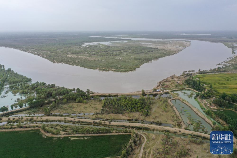 ↑這是在新疆阿克蘇地區(qū)沙雅縣拍攝的塔里木河。幾字形的回水灣,距離最近的農(nóng)田不足50米(8月3日攝,無人機照片)。