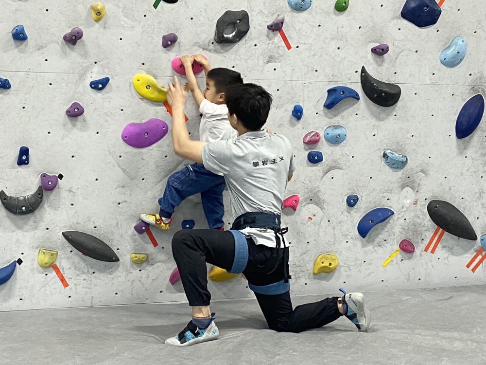 “攀巖主義”巖館工作人員在指導(dǎo)兒童學(xué)員。新華社發(fā)