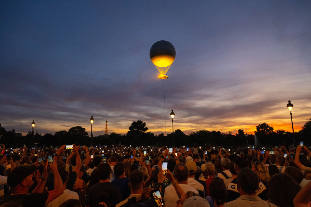 歷史建筑與現(xiàn)代藝術的融合彰顯法式浪漫。埃菲爾鐵塔上的燈光秀劃破夜空。特羅卡德羅廣場上,神秘人將火炬交給法國傳奇球星齊達內(nèi),不久后,杜樂麗花園內(nèi)的主火炬——一個直徑7米的火焰環(huán),頂部是一個高30米、直徑22米的系留氣球,被“點燃”。