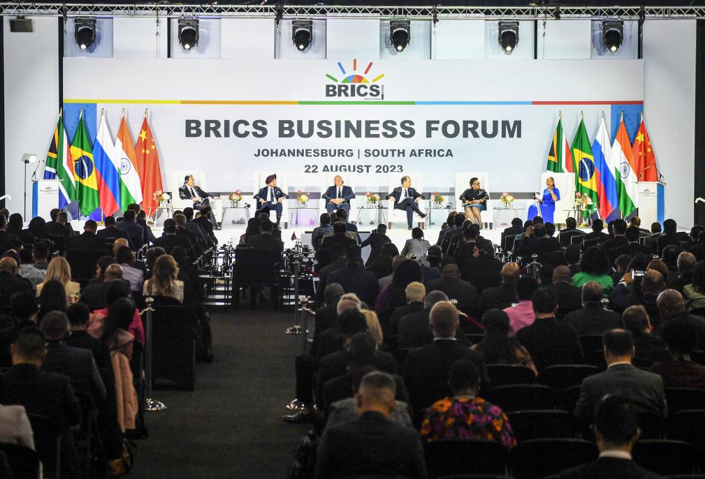 這是2023年8月22日在南非約翰內(nèi)斯堡拍攝的金磚國家工商論壇現(xiàn)場。新華社記者李亞輝攝