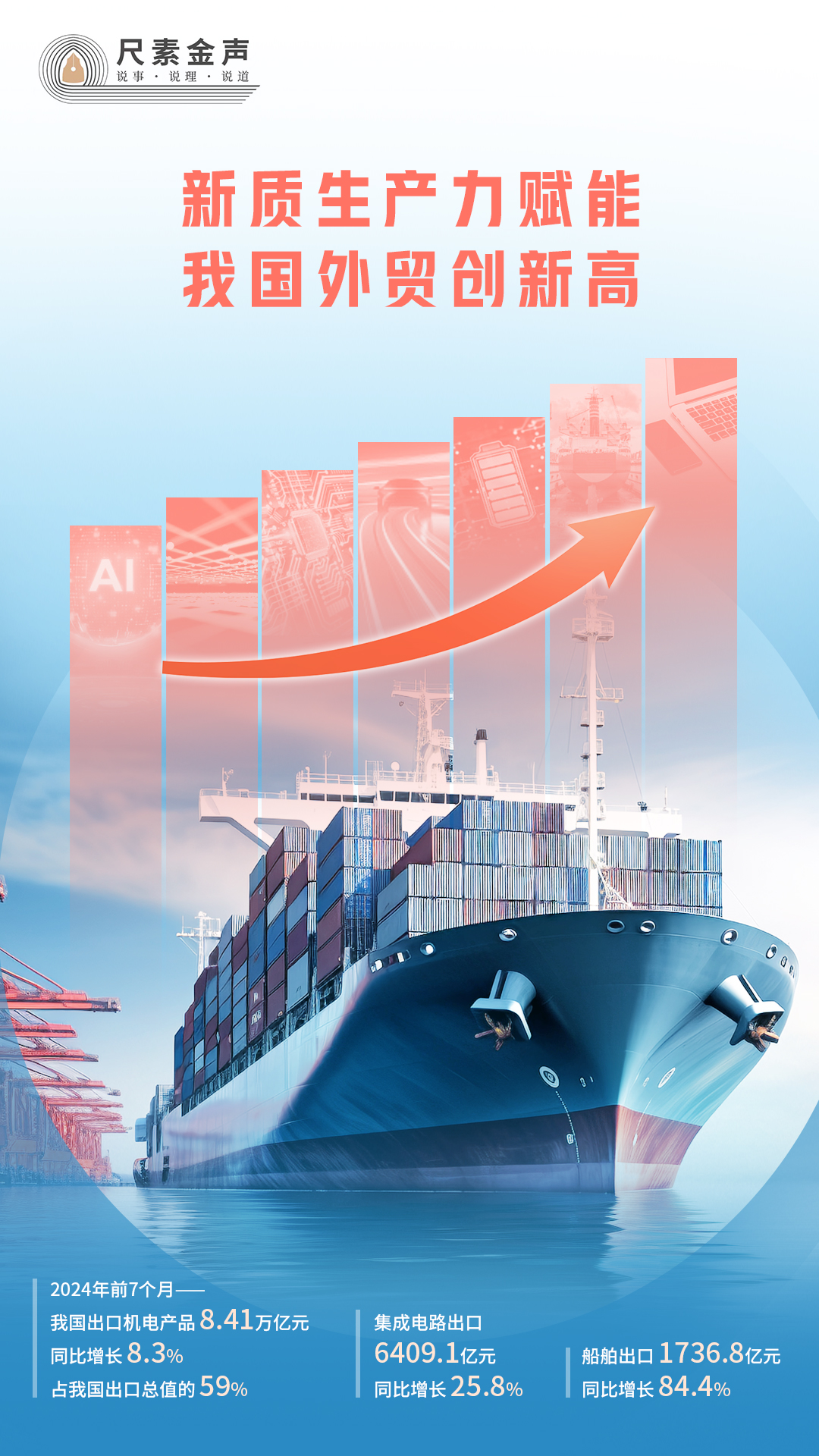 發(fā)展新質(zhì)生產(chǎn)力,讓我國外貿(mào)競爭力越來越足。從奧運(yùn)相關(guān)體育器材到功能多樣的電子產(chǎn)品,從智能“綠色”船舶到性能領(lǐng)先的集成電路……顯著的產(chǎn)業(yè)鏈供應(yīng)鏈競爭優(yōu)勢(shì)、強(qiáng)勁的創(chuàng)新動(dòng)能和有力的政策支持,支撐我國外貿(mào)國際競爭力與日俱增,高技術(shù)、高附加值產(chǎn)品快速增長,不斷在海外圈粉。