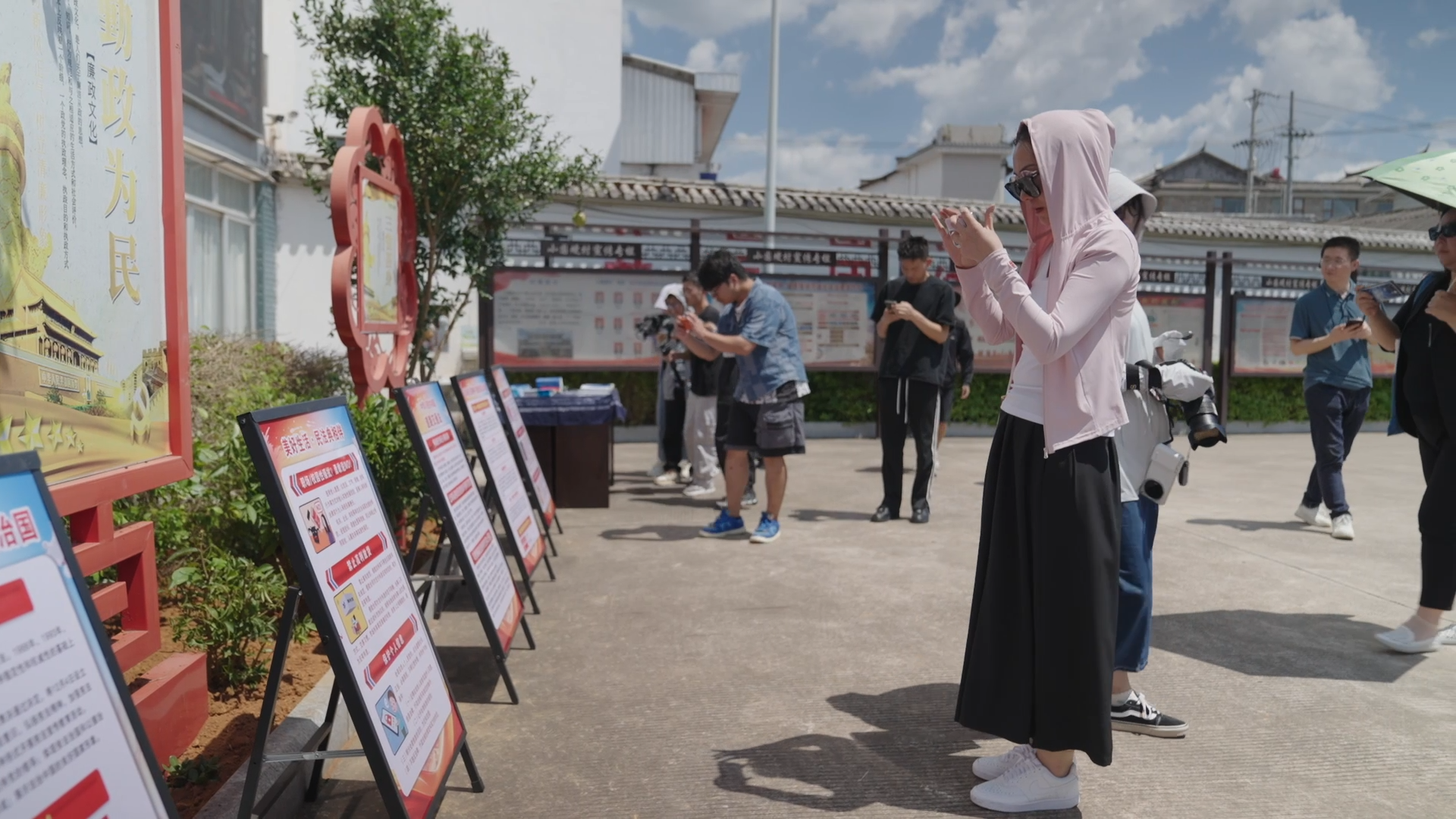 此行第一站,采訪團(tuán)來(lái)到永建鎮(zhèn)小圍埂村。走進(jìn)該村,青瓦白墻的民居,乳扇飄香的庭院,整潔干凈的村道,古色古香的楹聯(lián)和法治長(zhǎng)廊……你能真切感受到村內(nèi)和諧、積極、向上的村風(fēng)面貌。道路兩旁隨處可見(jiàn)各式法治宣傳標(biāo)識(shí)和歷史名人事跡,別樣的景致讓村子顯得祥和、靜謐。