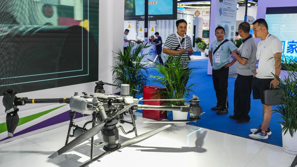 8月28日,觀展者在2024中國國際大數(shù)據(jù)產(chǎn)業(yè)博覽會會場參觀新型智能無人機(jī)。 新華社記者 陶亮 攝