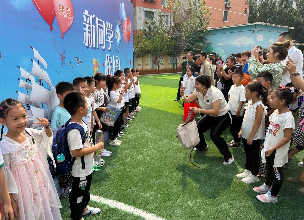 在沈陽市珠江五校教育集團(tuán)怒江校區(qū),千余名小學(xué)一年級新生來校報到?!靶峦瑢W(xué)你好”的巨型展板下,孩子們展露笑臉、拍照留念,準(zhǔn)備邁入人生的嶄新階段。