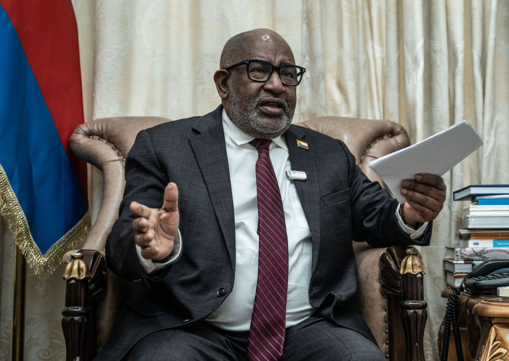 圖為8月29日,科摩羅總統(tǒng)阿扎利在位于科摩羅首都莫羅尼的總統(tǒng)府接受新華社記者專(zhuān)訪。(新華社記者王冠森攝)