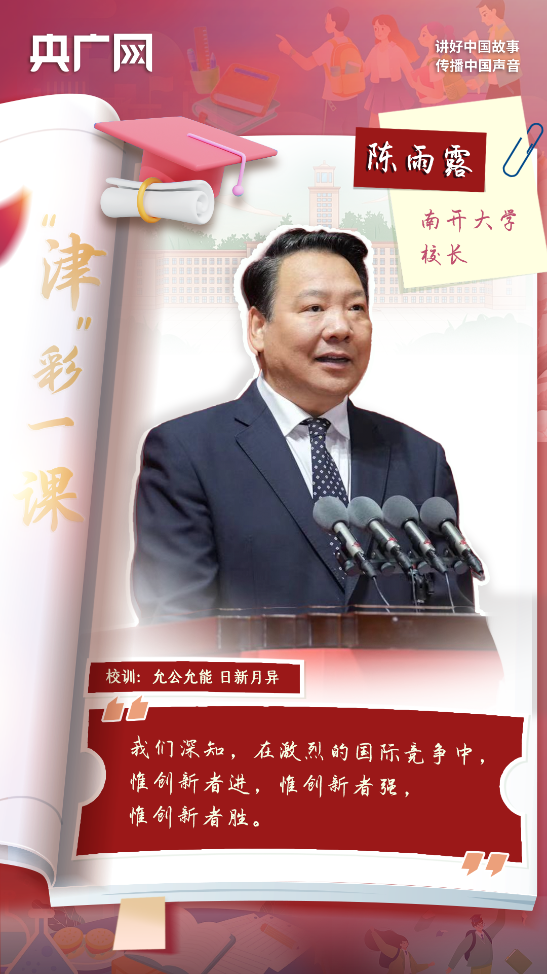 本期,我們走進(jìn)南開大學(xué),感受南開大學(xué)校長陳雨露“‘津’彩一課”的溫度與力量。
