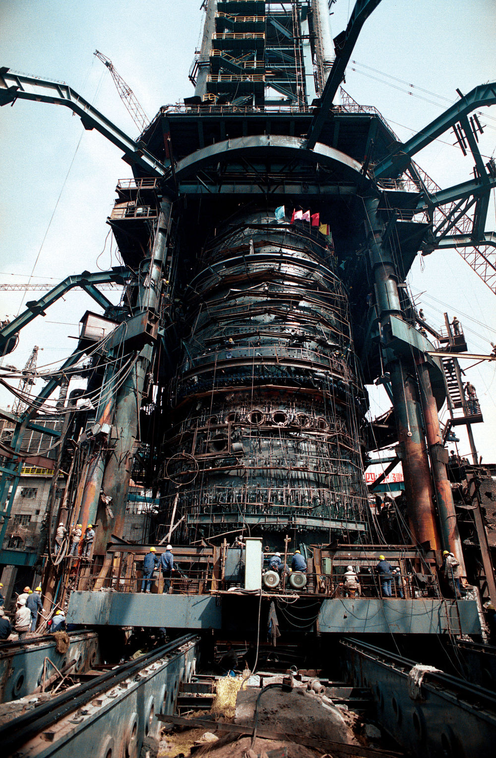 1992年4月,四高爐整體推移。新華社發(fā)(楊國(guó)東攝)
