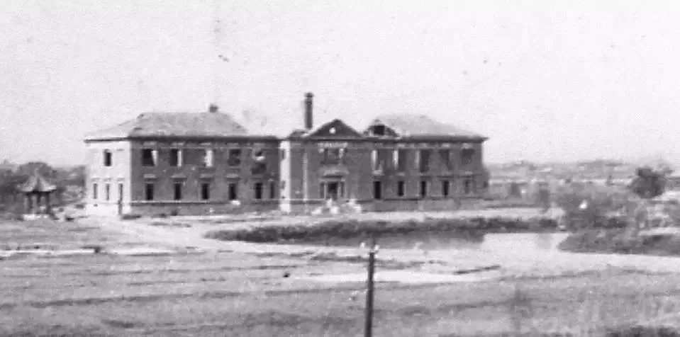 馬蹄湖畔被轟炸焚毀的木齋圖書館