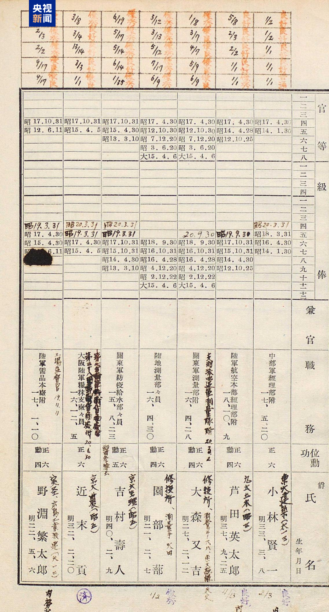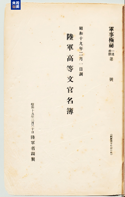 侵華日軍第七三一部隊罪證陳列館與日本學者松野誠也聯(lián)合發(fā)布了一份最新發(fā)現(xiàn)的史料文獻《陸軍高等文官名簿 陸軍書記官 陸軍技師》。