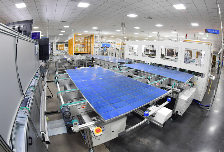 這是安徽華晟新能源科技股份有限公司的異質(zhì)結(jié)光伏電池及組件工廠內(nèi)景(8月24日攝)。