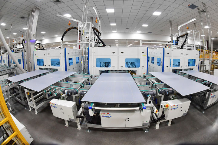 這是在安徽華晟新能源科技股份有限公司的異質(zhì)結(jié)光伏電池及組件工廠內(nèi)拍攝的智能化產(chǎn)線(8月20日攝)。