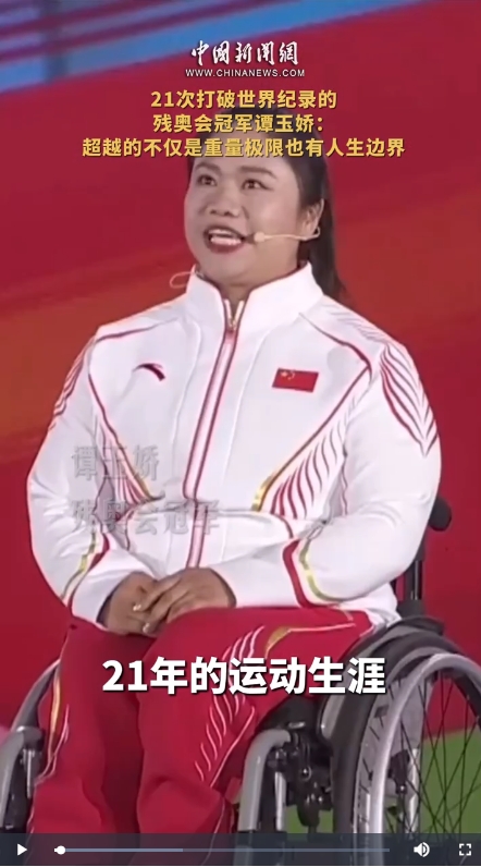 1990年出生的譚玉嬌7歲時(shí)因骨髓炎導(dǎo)致右腿殘疾。如今,她拿到了43枚金牌,21次打破世界紀(jì)錄。一次次超越重量極限的她,也在超越著她人生的邊界。譚玉嬌成為中國(guó)首位國(guó)際殘奧委會(huì)運(yùn)動(dòng)員委員會(huì)委員,在巴黎殘奧會(huì)閉幕式上留下了屬于中國(guó)的獨(dú)特印跡。