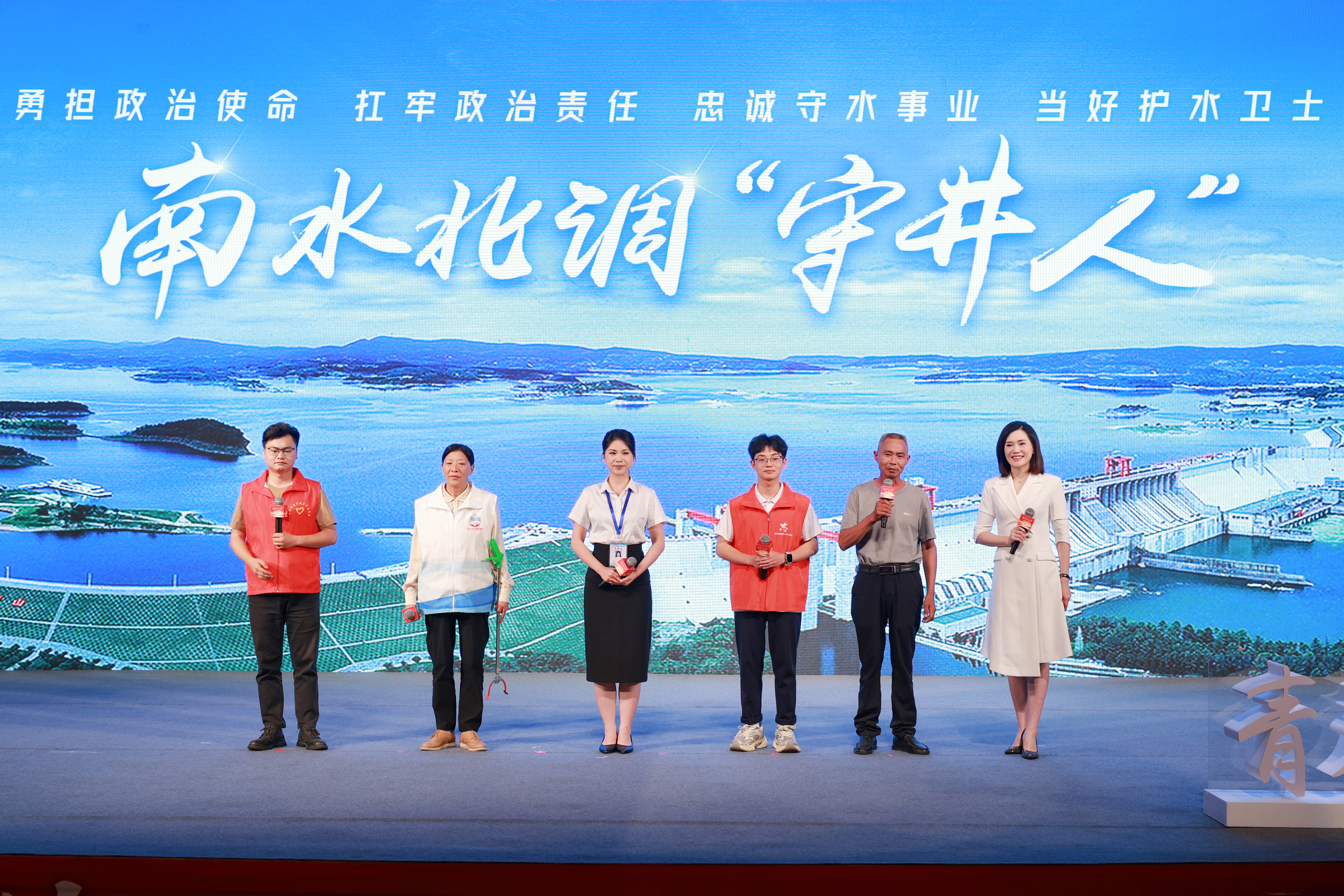 今年8月,一封來自習(xí)近平總書記的回信在丹江口庫區(qū)引起了強(qiáng)烈反響。丹江口守水護(hù)水志愿者吳勇分享《南水北調(diào)“守井人”》的故事:10年來,鄂西北的丹江口群眾一直堅(jiān)持做著一件“點(diǎn)滴的事”,也是“天大的事”——確?!耙汇逅览m(xù)北送”!丹江口的守水調(diào)度員余丹、清漂員張旭春、護(hù)水員秦立萍、學(xué)生志愿者瞿德齊來到現(xiàn)場,并一起倡議:“踐行總書記的囑托,繼續(xù)弘揚(yáng)志愿服務(wù)精神,當(dāng)好‘守井人’,確?!汇逅览m(xù)北送’”!