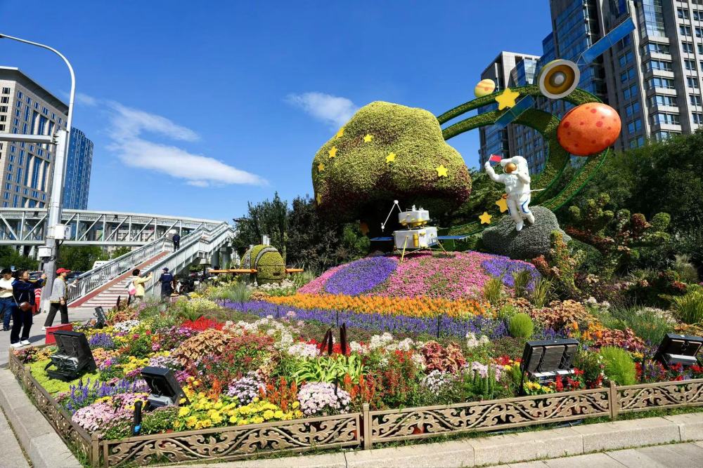 在天安門(mén)廣場(chǎng)和長(zhǎng)安街沿線邂逅花壇,是無(wú)數(shù)人國(guó)慶游的“打開(kāi)方式”。9月25日,“祝福祖國(guó)”巨型花籃亮相天安門(mén)廣場(chǎng)中心,10組立體花壇扮靚長(zhǎng)安街沿線。