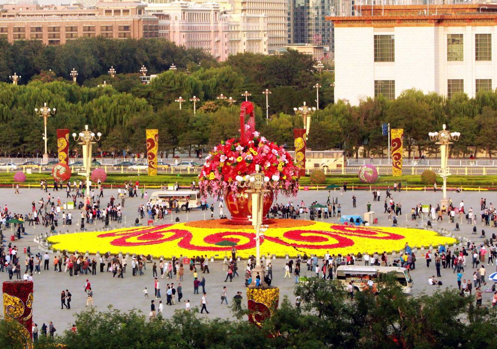 時(shí)間撥回1984年,天安門(mén)廣場(chǎng)頭一次出現(xiàn)花壇,當(dāng)時(shí)僅以擺放花帶、花堆的平面形式呈現(xiàn),花色相對(duì)單調(diào)。1986年國(guó)慶節(jié),名為“孔雀開(kāi)屏,龍的傳人”的花壇亮相天安門(mén)廣場(chǎng),這是首次嘗試搭建立體花壇。隨著改革開(kāi)放的不斷深入,我國(guó)發(fā)展日新月異,國(guó)慶花壇也隨之蝶變,2008年時(shí),近10米的傳統(tǒng)宮燈造型花壇現(xiàn)身天安門(mén)廣場(chǎng),造型逐漸凸顯立體感、層次感。