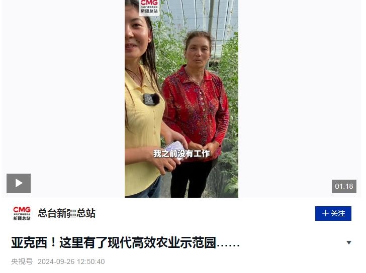 阿依謝姆古麗,在新疆喀什地區(qū)疏勒縣的山東省援疆項目“蔬樂”現(xiàn)代高效農(nóng)業(yè)示范園,從事西瓜種植工作已經(jīng)兩年了?!白鳛檗r(nóng)民的她,之前沒有收入。”談到這份工作,阿依謝姆古麗激動得熱淚盈眶。