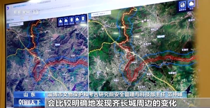 淄博市文物保護(hù)和考古研究院安全管理與科技部主任 范仲峰:有些地段山比較高,巡護(hù)員到達(dá)率可能不是太理想,尤其是在雨雪天氣,是登不到山頂?shù)?。我們充分運(yùn)用了衛(wèi)星圖片對比功能,通過圖片的變化,會比較明確地發(fā)現(xiàn)齊長城周邊的變化,提高了我們巡護(hù)的視野。下一步我們可能會充分使用無人機(jī),包括一些地理信息相關(guān)的最新數(shù)據(jù),補(bǔ)充和完善我們的巡護(hù)系統(tǒng)。
