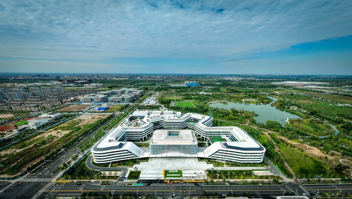 這是2024年9月13日拍攝的中國(guó)星網(wǎng)雄安總部辦公樓(無(wú)人機(jī)照片)。新華社記者 牟宇 攝
