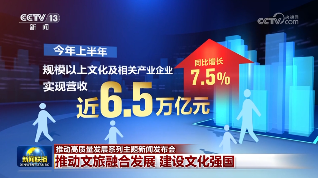 今年上半年,規(guī)模以上文化及相關(guān)產(chǎn)業(yè)企業(yè)實現(xiàn)營收近6.5萬億元,同比增長7.5%;前三季度,國內(nèi)旅游人次預(yù)計達(dá)42.9億,同比增長16.8%;入境旅游人次預(yù)計達(dá)0.95億,同比增長55.4%,更多外國民眾來華旅游,體驗賓至如歸、感受美好中國。