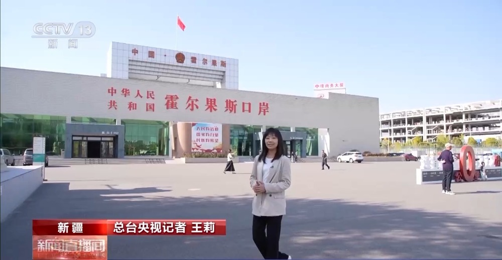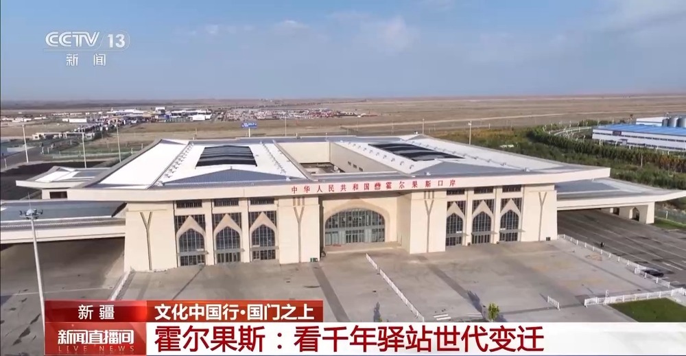 總臺(tái)央視記者 王莉:這里是位于新疆伊犁哈薩克自治州的霍爾果斯公路口岸,這座巍峨雄偉的建筑就是霍爾果斯第六代國(guó)門(mén),這里與哈薩克斯坦隔河相望,是中國(guó)向西開(kāi)放的重要窗口和連接亞歐大陸的“黃金口岸”。千年以前,霍爾果斯就是古絲綢之路上的重要驛站,一百多年前,霍爾果斯公路口岸正式通關(guān),從20世紀(jì)50年代的第一代國(guó)門(mén),到如今的第六代國(guó)門(mén),國(guó)門(mén)的變遷,見(jiàn)證著霍爾果斯的這座邊境城市的蓬勃發(fā)展。