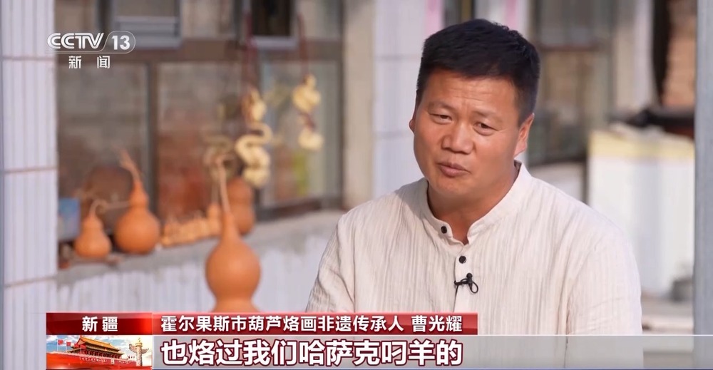 霍爾果斯市葫蘆烙畫(huà)非遺傳承人 曹光耀:特別喜歡烙我們新疆的特色,獨(dú)特之處就是說(shuō)燙畫(huà)、烙畫(huà)、火筆畫(huà)它能顯出一種自然的美,它還有古色古香的古韻,特別接地氣。作為烙畫(huà)非遺傳承人,我們必須要把好的文化傳承下去。