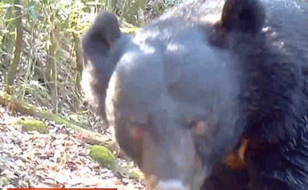 福建龍棲山國家級(jí)自然保護(hù)區(qū)里,黑熊看到攝像機(jī),先警惕地湊近聞了聞,再走近仔細(xì)觀察觀察,哎呀,還是不好判斷到底是啥?還是三十六計(jì)走為上計(jì)吧。