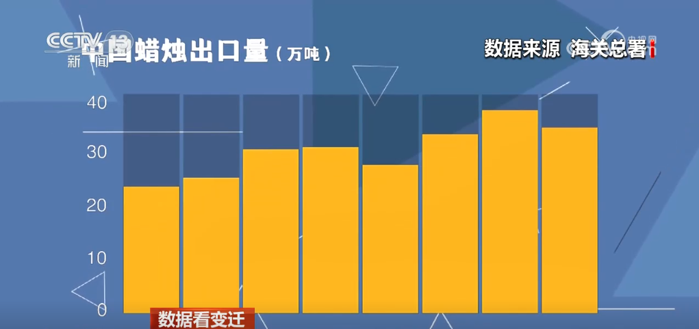 隨著電力普及,蠟燭在國內(nèi)逐漸淡出人們的視線,但卻在海外大放異彩。近10年來,我國蠟燭年度出口量邁過30萬噸關(guān)口,和中國綠茶一年的出口量相當。中國蠟燭“漂洋過?!比ネ?60多個國家和地區(qū),穩(wěn)坐全球蠟燭貿(mào)易“頭把交椅”。國內(nèi)蠟燭相關(guān)企業(yè)增加到約1.02萬家,近50%的企業(yè)成立于10年之內(nèi),傳統(tǒng)的蠟燭產(chǎn)品向高附加值邁進。