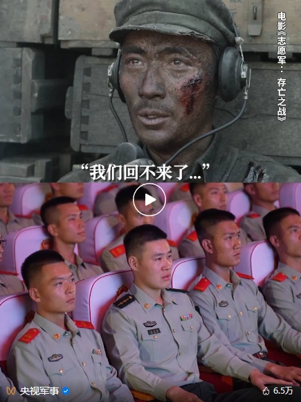 近日,武警北京總隊機動某支隊官兵觀看了電影《志愿軍:存亡之戰(zhàn)》。(該支隊特戰(zhàn)一中隊前身原隸屬電影中“英雄鐵軍”63軍188師,是這部電影中主要描繪的連隊原型。)在電影里,63軍188師營指導員李想說完“一營倒下了,我們回不來了,你們繼續(xù)前進”,眼含熱淚的官兵響亮回答:“我們繼續(xù)前進!我們繼續(xù)前進!我們繼續(xù)前進!”這一幕感動了眾多網友。