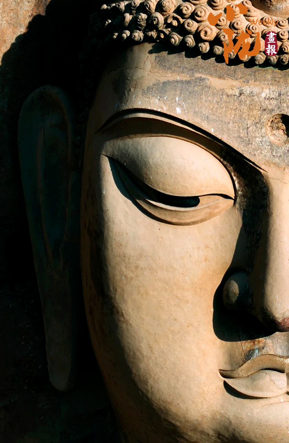這尊美到極致的佛像,造像面相橢圓飽滿,斜眉吊目,懸鼻小口,面部慈悲而莊嚴,嫻靜而寬容、矜持且淡然,服飾簡潔、質樸,寬博厚重,極富質感。神秘的微笑中,是一種無念無掛的大自由狀態(tài),微閉的眼睛帶有一絲含蓄,內斂的神情隱藏著一份自信。