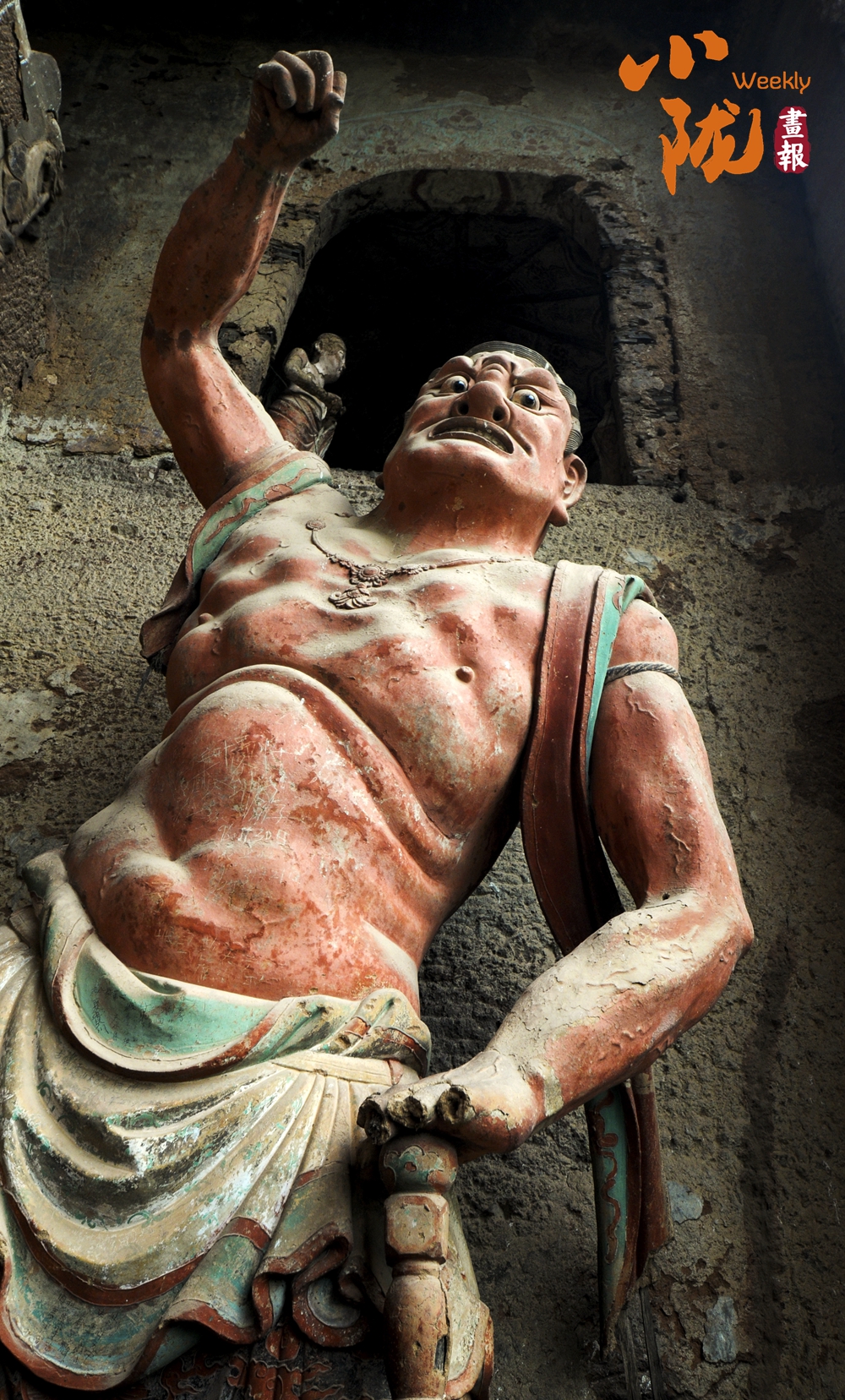 麥積山的塑像,除早期作品外,從北魏開始,幾乎所有的佛像都是俯首下視的體態(tài),有和藹可親的面容,并且面帶微笑。雖為佛祖,卻像世俗的人,是人們美好愿望的化身。