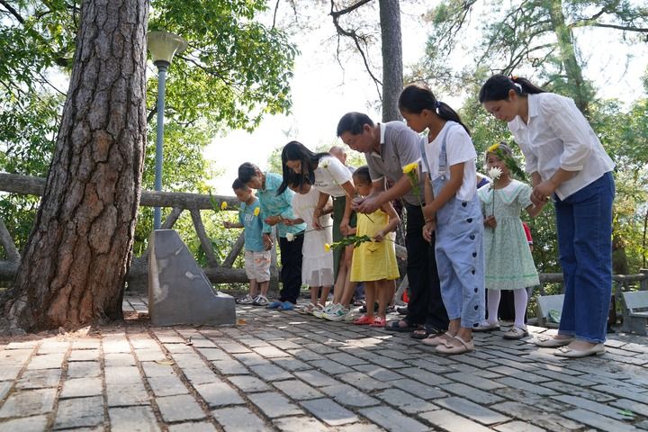 在江西省瑞金市葉坪鄉(xiāng)華屋村,村民在松樹下祭拜烈士(2022年9月17日攝)。新華社記者 周密 攝