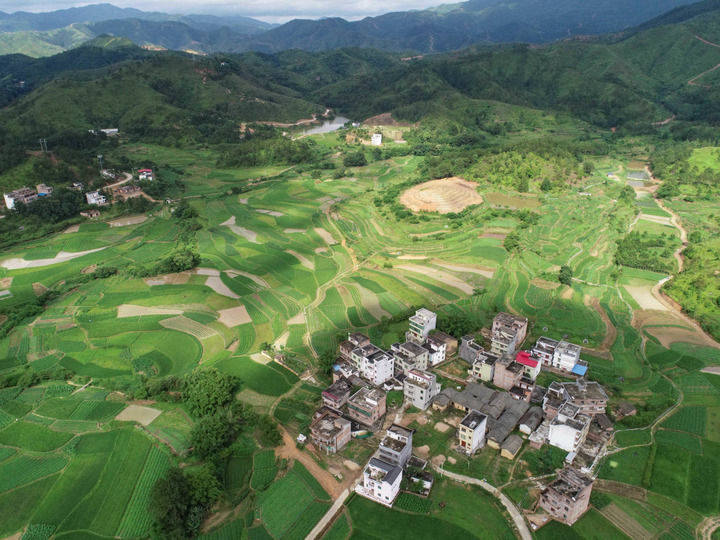 江西省贛州市于都縣段屋鄉(xiāng)寒信村景色(2019年6月13日攝,無人機照片)。新華社記者 周密 攝