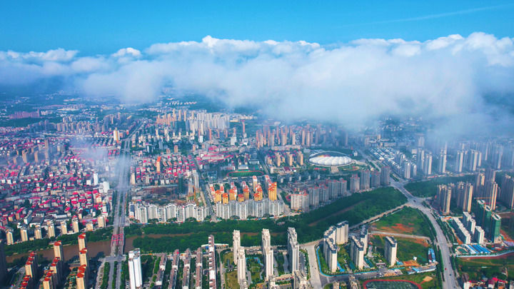 江西省瑞金市城區(qū)景色(2024年5月6日攝,無人機照片)。新華社發(fā)(劉黎明 攝)