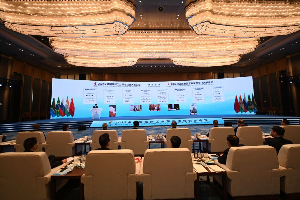 這是2022年9月7日拍攝的金磚國家新工業(yè)革命伙伴關(guān)系創(chuàng)新基地項目簽約儀式現(xiàn)場。新華社記者林善傳攝