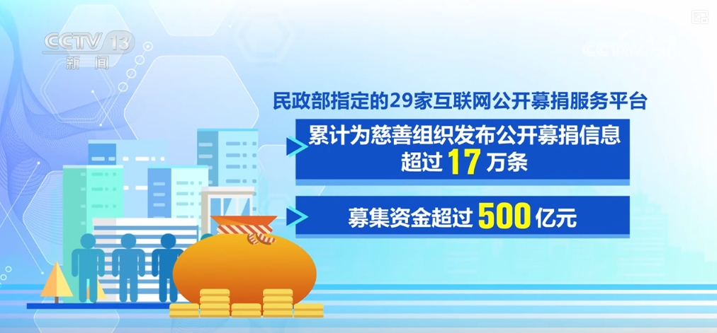 目前,全國(guó)共登記認(rèn)定慈善組織超過1.5萬家,是五年前的三倍;全國(guó)累計(jì)備案慈善信托2062單,是五年前的十五倍。年度捐贈(zèng)總額最高突破2000億元,民政部指定的29家互聯(lián)網(wǎng)公開募捐服務(wù)平臺(tái)累計(jì)為慈善組織發(fā)布公開募捐信息超過17萬條,募集資金超過500億元。