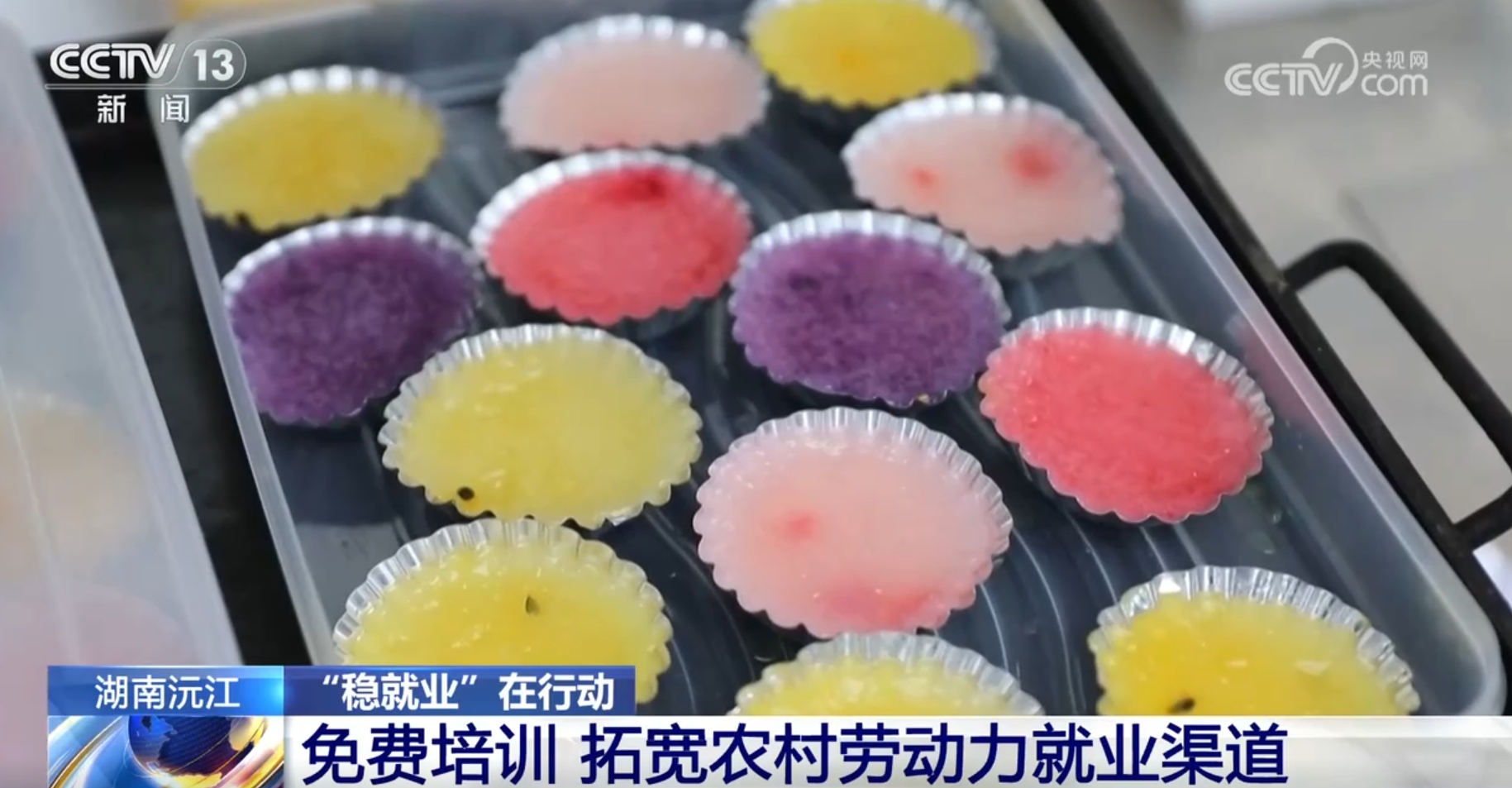在湖南沅江人社局定期舉辦的免費職業(yè)技能培訓班上,學員們正在學習蛋糕制作。