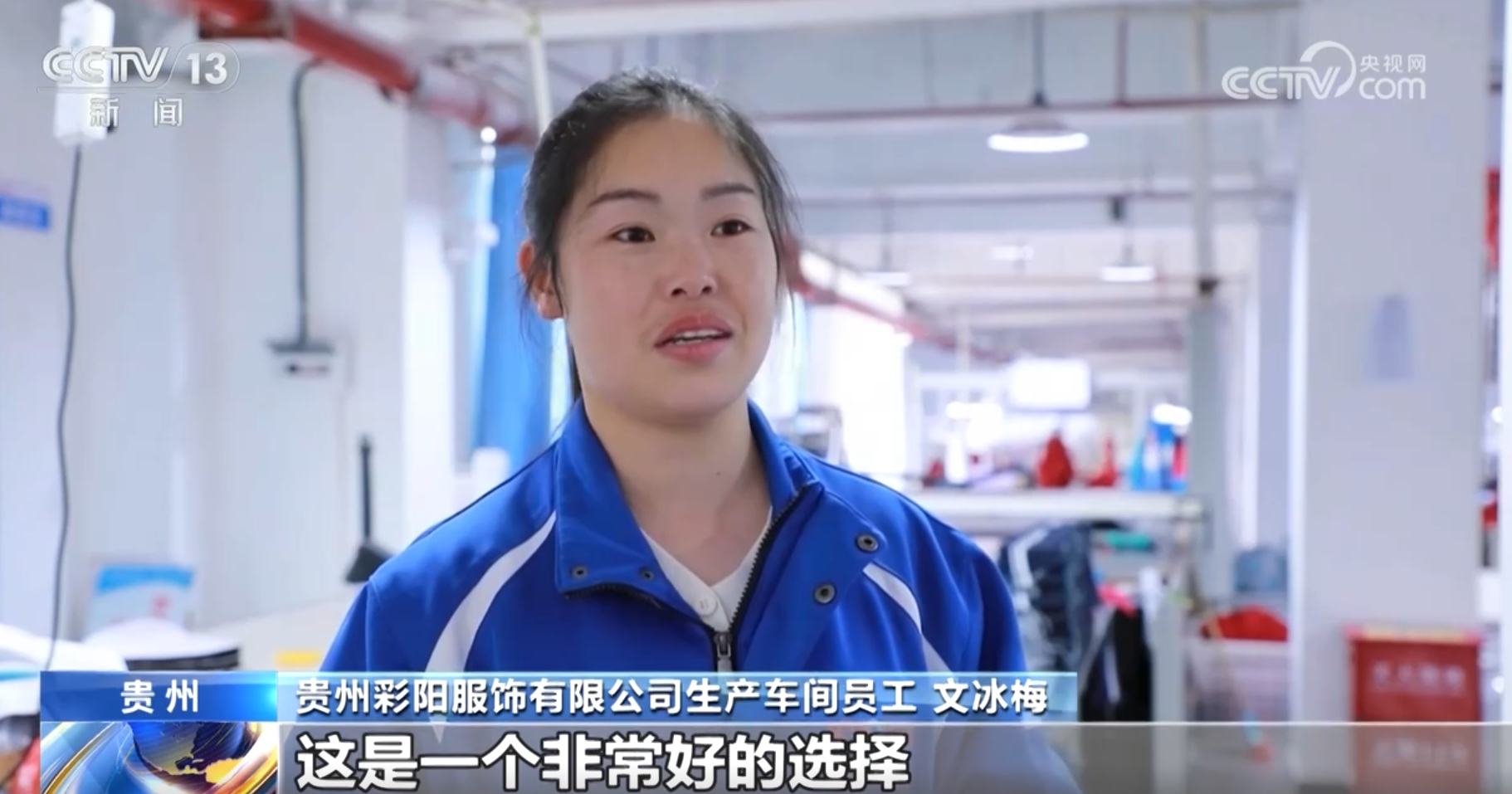 貴州彩陽服飾有限公司生產車間員工文冰梅稱:“平均工資四五千元,十幾年都在外面打工,回到家還有一份穩(wěn)定的收入,對于我們長期在外面打工的人來說,這是一個非常好的選擇?!?/p>