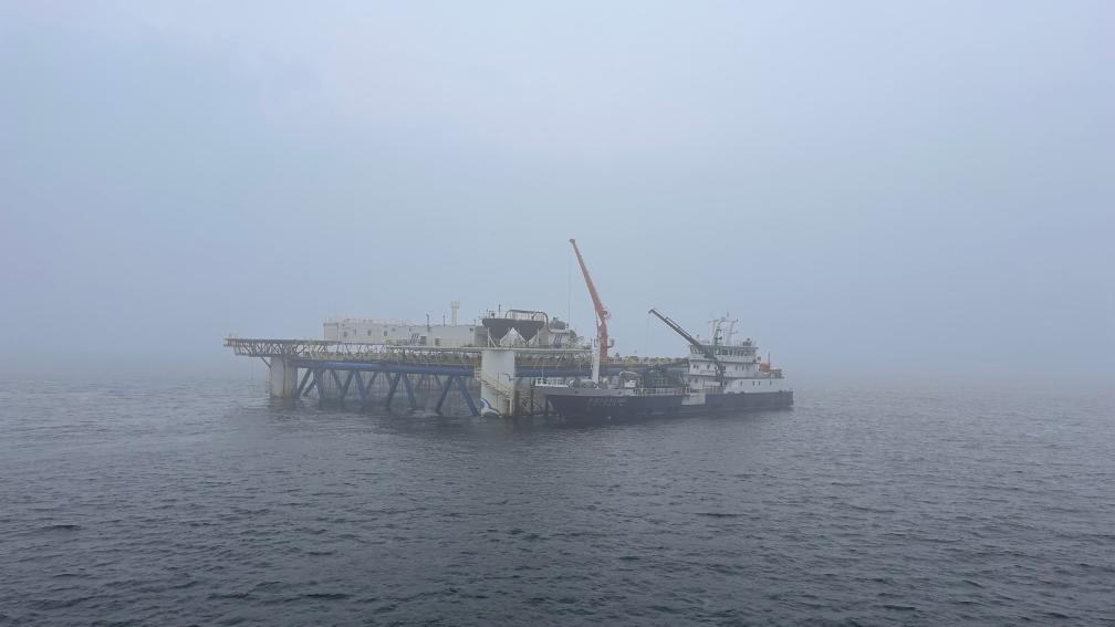 這是雨中的“經(jīng)海002號(hào)”深遠(yuǎn)海智能網(wǎng)箱。新華社記者 李志浩 攝