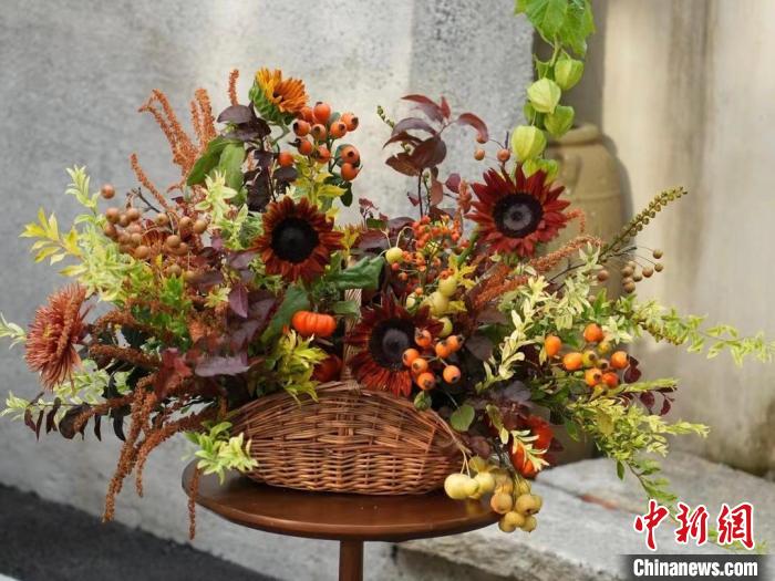 花藝師根據(jù)“撿秋”靈感制作的花束。(受訪者供圖)