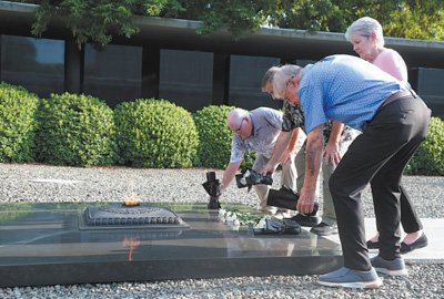 飛虎隊代表團成員向南京大屠殺死難者獻(xiàn)上白菊。