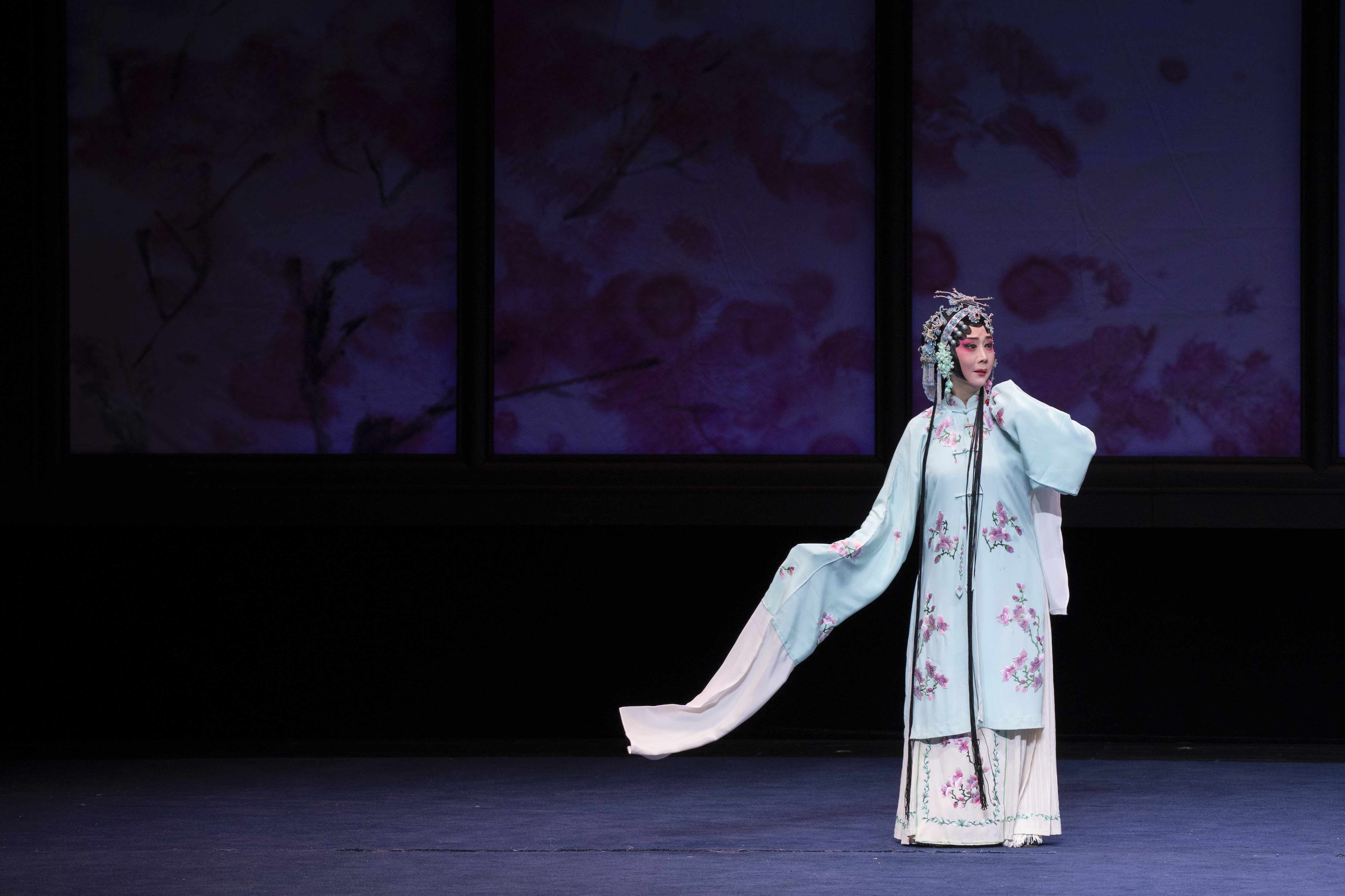 從年齡上看,這五位“杜麗娘”的扮演者年齡跨度從36歲到82歲,覆蓋了老中青三代,尤其是以《離魂》一折壓軸出場的梁谷音,她不僅是本次演出中最年長的演員,更是昆曲界的一位傳奇人物,師承沈傳芷、張傳芳、朱傳茗等“傳”字輩名家,在六旦領(lǐng)域造詣深厚,當(dāng)晚參與演出的多位演員均為她的得意門生。可以說這次演出不僅是對《牡丹亭》這部經(jīng)典劇目的致敬,也是對昆曲藝術(shù)傳承的一種展示。
